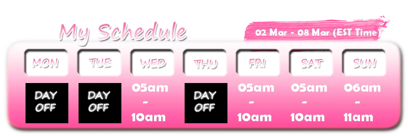 In my tip menu, you’ll find great options that won’t let you get bored and will make my show even brighter. Enjoy!